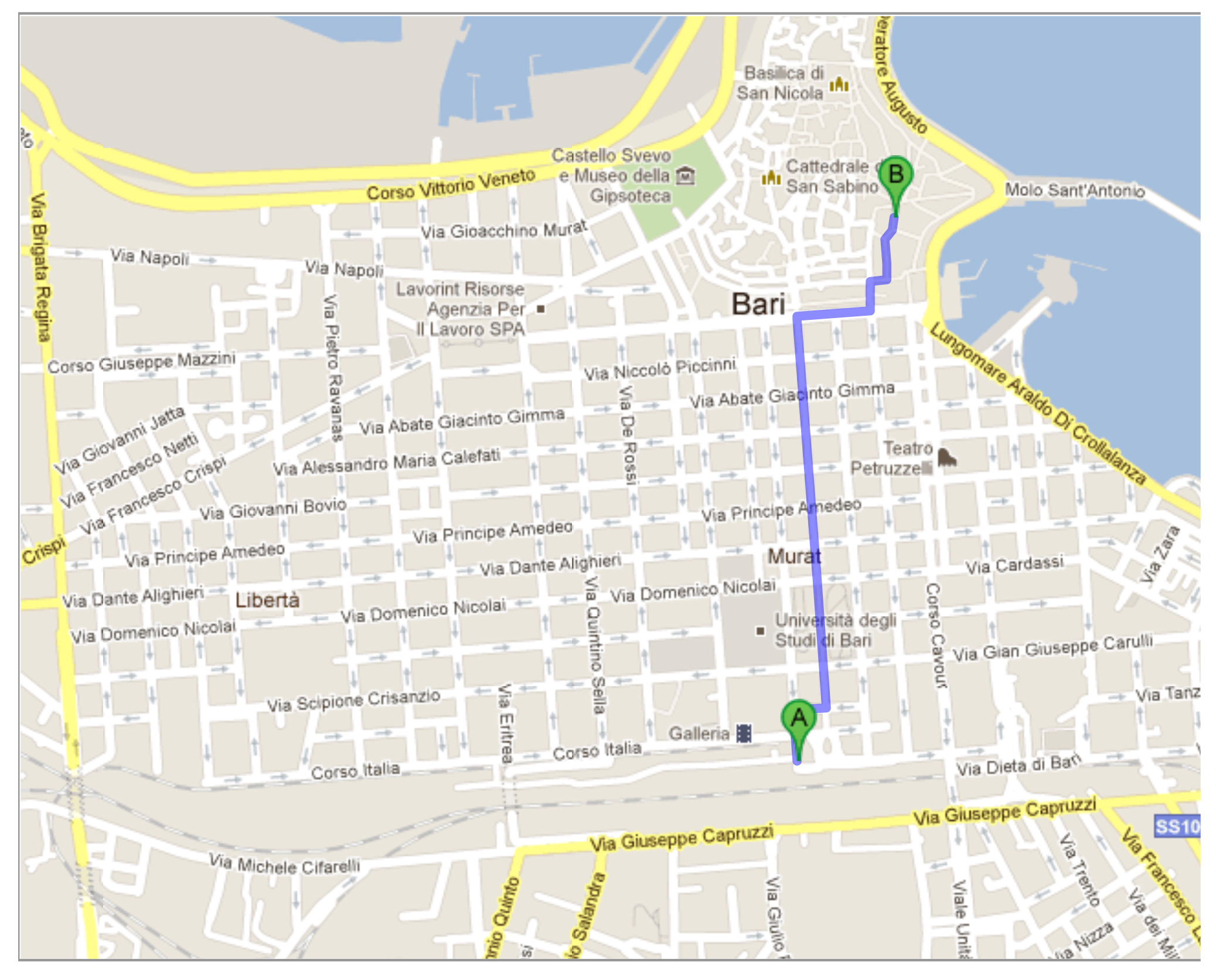 The following maps show the suggested walking route to go to the restaurant from the Department of Physics and from the Railway Station.