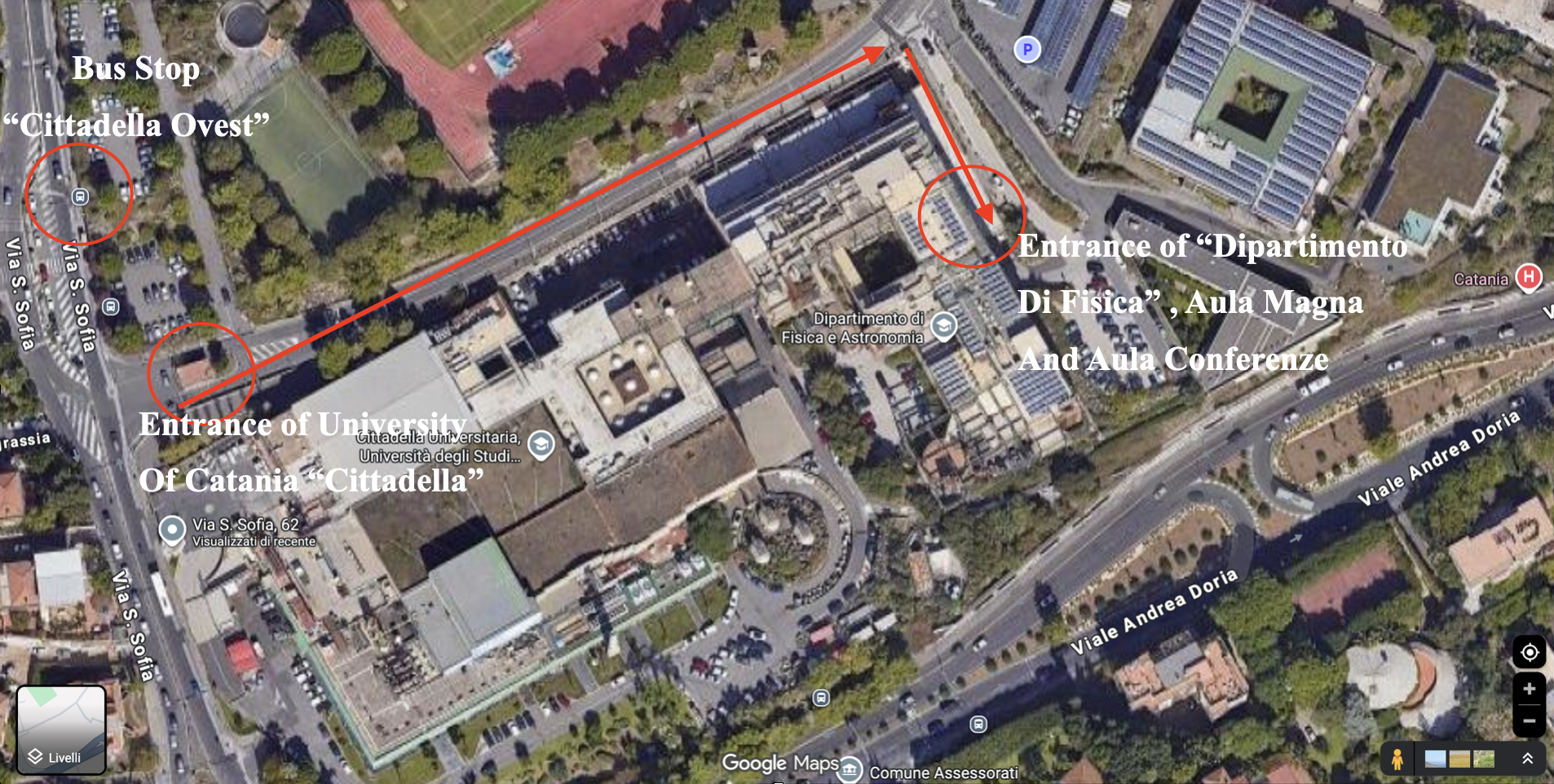 The workshop will take place in Aula Magna and Aula Conferenze (see Program), at the ground floor of the Dipartimento di Fisica e Astronomia, located inside the Scientific Campus "Città Universitaria"(see campus map) and in Accademia degli Zelanti, Acireale (Gmaps).