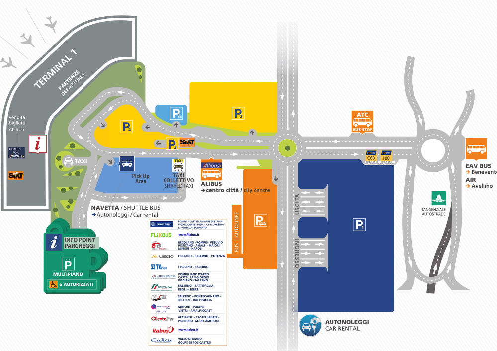 Arriving by plane: from Napoli Capodichino Airport it takes 45 min to reach the Port of Naples. The company Alibus runs a bus that leaves the airport every 20-30 minutes (see map below) and arrives to the Naples Maritime Station (Stazione Marritima di Napoli), which is the final stop.