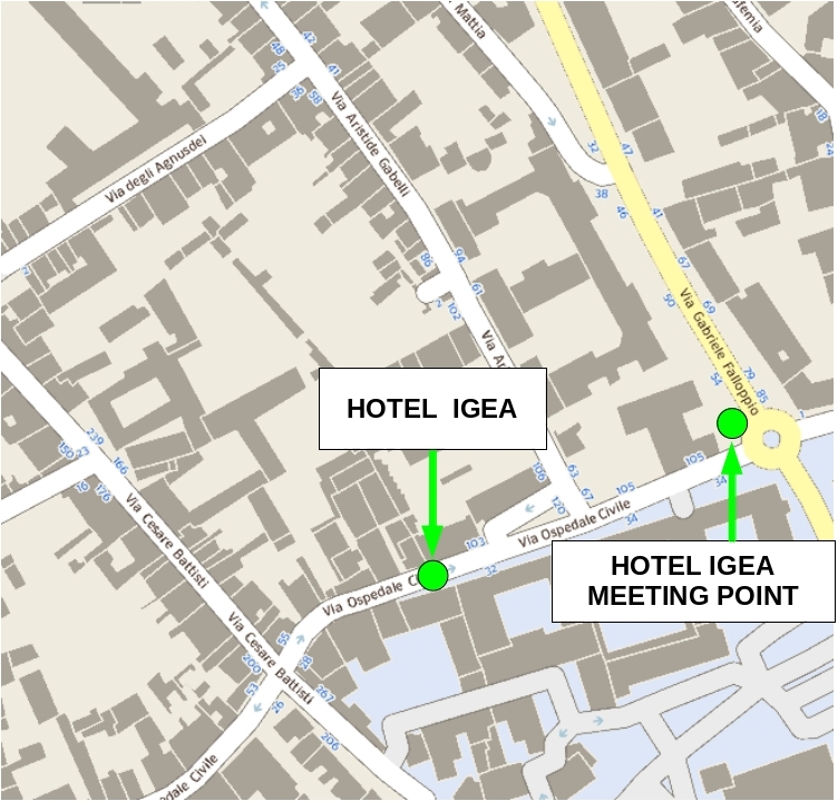 For participants lodging at Hotel Igea: leaving the hotel, go straight about 50 meters till the crossroad with Via Falloppio, turn on the left; just after the newsagent’s there is a SITA bus stop.