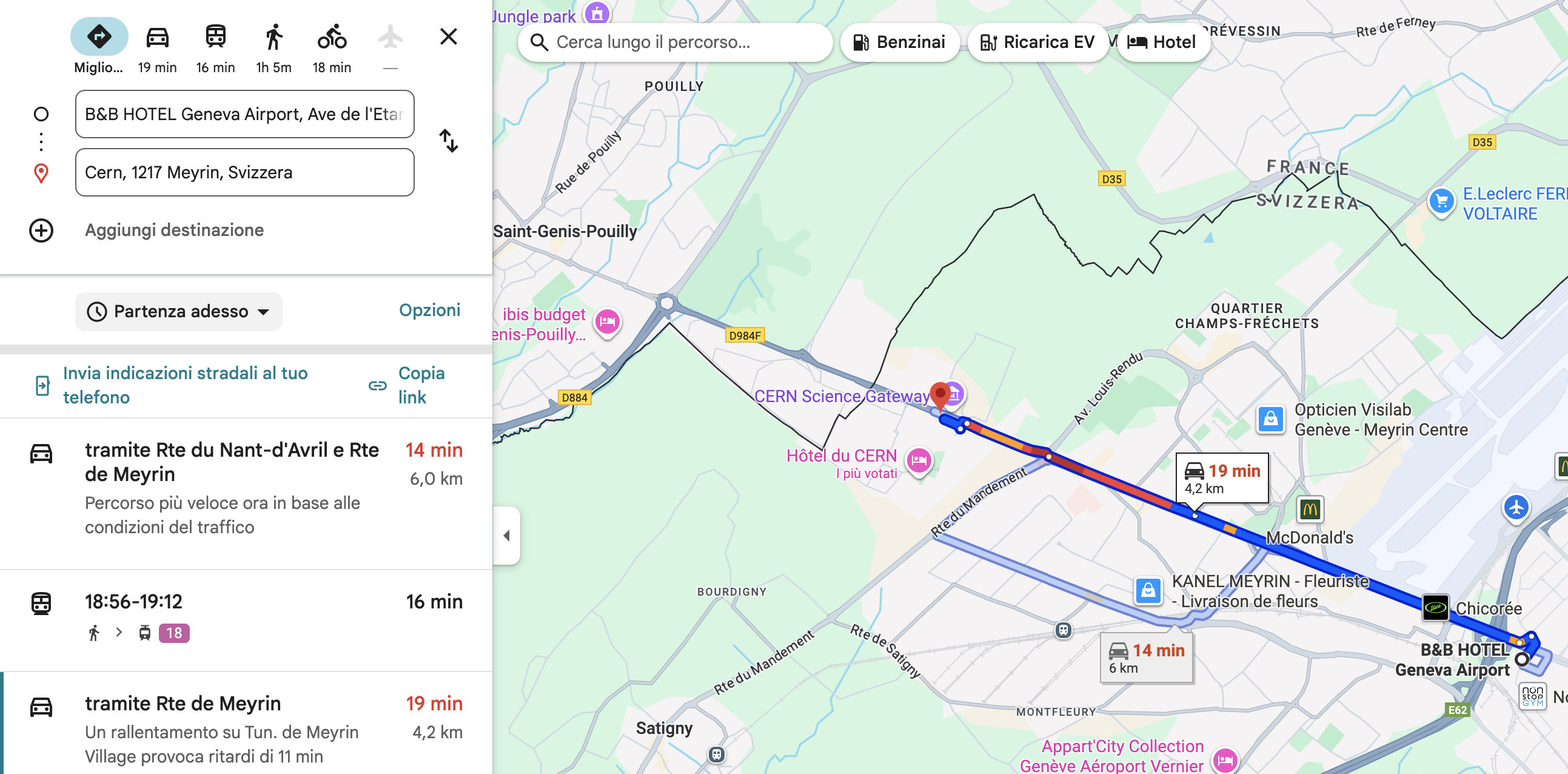 Il viaggio dura circa 20-30 minuti, è sufficiente prendere il Tram n° 18 (direzione CERN) fino al capolinea.
