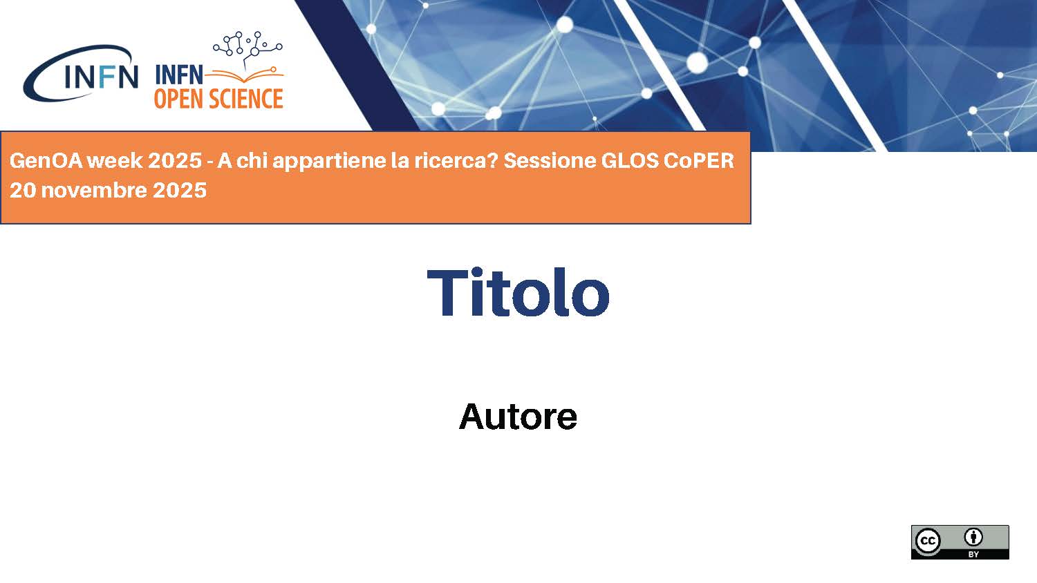 Modello Powerpoint disponibile all'indirizzo: https://openscience.infn.workplace.garr.it/Products/Files/DocEditor.aspx?fileid=867
