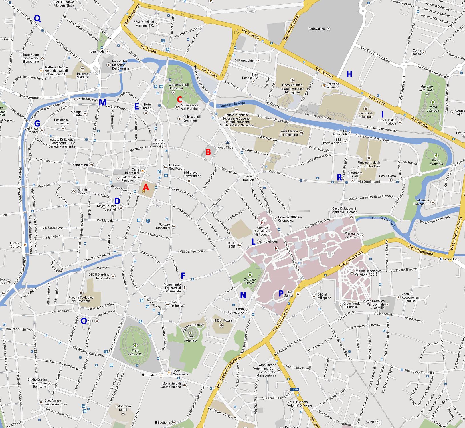 | HOTELS (letter in brackets indicates the hotel on Padova general map) |
