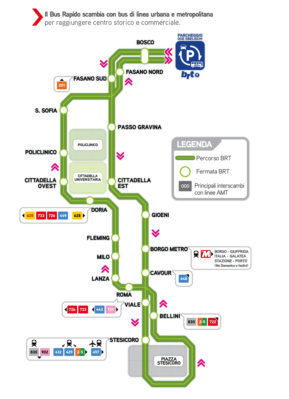 It is also possible to get to campus via the BRT bus line; from city center take the bus at the "Stesicoro" bus stop in "Piazza Stesicoro" and get off at the "Cittadella Ovest" bus stop, just 30 meters after campus entrance.