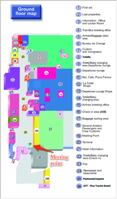 The meeting point for participants is the area in front of the check-in desks, in the main hall of the airport (map).